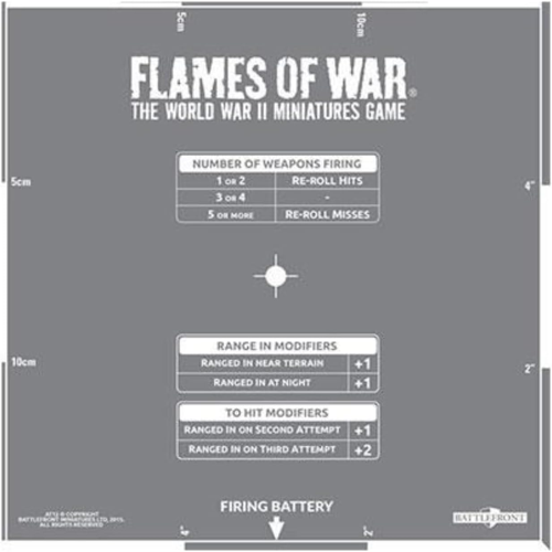 Artillery and aircraft are not precision weapons. Their shells and bombs blanket a wide area, possibly wiping out dozens of the enemy at a time. Artillery Templates make it easy to work out who is hit, and who isn’t when you introduce these weapons into your games. The Artillery Template made out of a 6" x 6" etched acrylic.Feedback