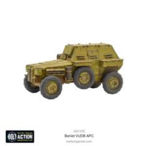 Contains one resin & metal armoured personnel carrier, Bolt Action stat card and vehicle damage markers.