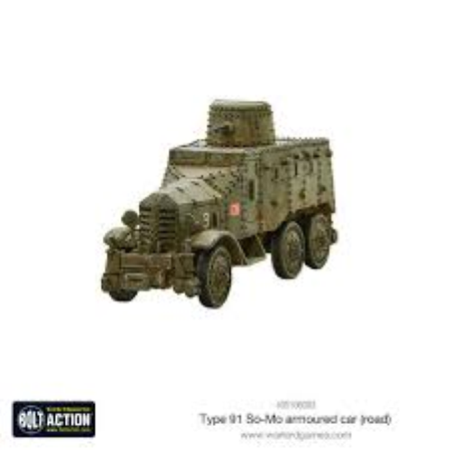 Despite its light LMG armament, the So-Mo provides a relatively inexpensive armoured car for a Japanese force, which has the dual benefit of being able to transport six infantrymen across the battlefield. It is particularly useful if the battlefield contains any railroads!