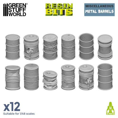 Barili metallici in resinaAggiungi realismo, dettagli e personalità ai tuoi tavoli da gioco con i barili metallici in resina di alta qualità di GSW, progettati nelle dimensioni standard dei wargame con miniature. Grazie alle loro proporzioni e al livello di dettaglio, sono totalmente compatibili con giochi come Infinity®, Star Wars® Legion, Warhammer 40K®, Necromunda®, Kill Team®, Bolt Action® e molti altri.