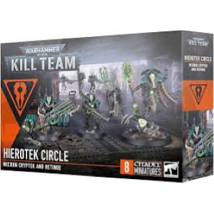 Una Cerchia Hierotek è costituita da guerrieri immortali dei Necron riunitisi per portare avanti i piani imperituri dei loro maestri Cryptek. Sono fatti di metallo vivvente e usano una scienza arcana per portare a termine le loro missioni clandestine.Questo kit multicomponente di plastica ti consente di assemblare otto Necron che possono essere usati come agenti della Cerchia Hierotek nelle partite a Kill Team o schierati con le armate dei Necron nelle partite a Warhammer 40,000. Cinque modelli possono essere assemblati come Necrocecchini o come Immortali implacabili; sono inoltre presenti delle parti per assemblare un Tecnomante, un Plasmocita Acceleratore e un Plasmocita Rianimatore. Altri componenti permettono di assemblare specialisti come il disciplinato Despotek e il misterioso Apprentek.
